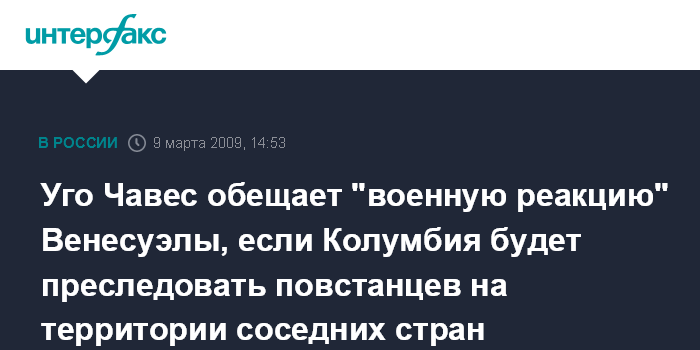 Причиной негативной реакции У.Чавеса послужили заявления Х.Сантоса о том, что его ведомство не отказывается от идеи преследования колумбийских повстанцев в соседних странах.