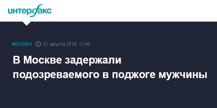 Москва. 21 августа. INTERFAX.RU - Полиция в Москве задержала двух человек, подозреваемых в поджоге мужчины на Касимовской улице. Об этом сообщили в пресс-службе ГУ МВД столицы.