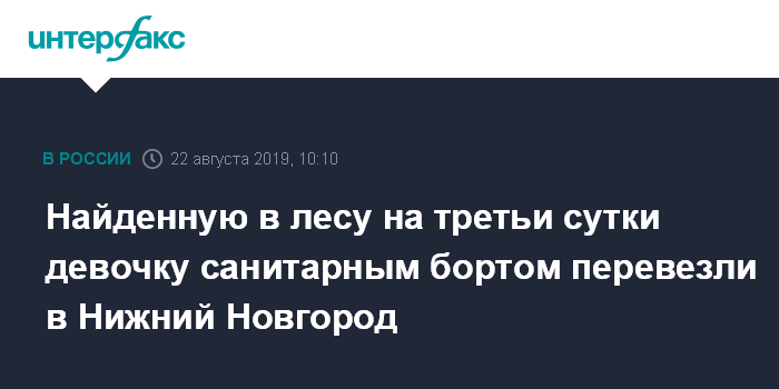 Найденную в лесу на третьи сутки девочку санитарным бортом перевезли в Нижний Новгород