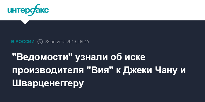 "Ведомости" узнали об иске производителя "Вия" к Джеки Чану и Шварценеггеру