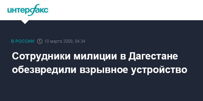 Махачкала. 10 марта. ИНТЕРФАКС-ЮГ - В Махачкале обезврежено взрывное устройство, сообщили "Интерфаксу" в дежурной части УВД города.