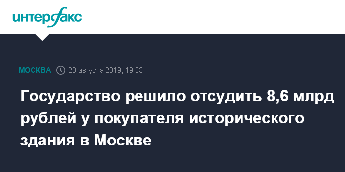 Государство решило отсудить 8,6 млрд рублей у покупателя исторического здания в Москве