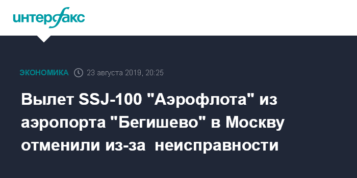 Вылет SSJ-100 "Аэрофлота" из аэропорта "Бегишево" в Москву отменили из-за неисправности