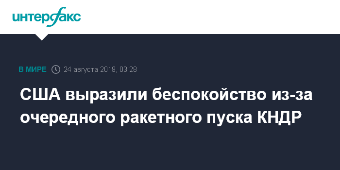 Москва. 24 августа. INTERFAX.RU - США заявили об обеспокоенности пуском ракет, который Северная Корея осуществила в ночь на субботу, сообщило агентство Yonhap из Вашингтона со ссылкой на американского правительственного чиновника.