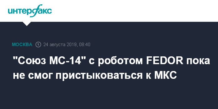 "Союз МС-14" с роботом FEDOR пока не смог пристыковаться к МКС