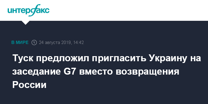 Москва. 24 августа. INTERFAX.RU - Председатель Европейского совета Дональд Туск полагает, что причин, по которым Россию не следует приглашать на встречи G8, с 2014 года стало только больше.