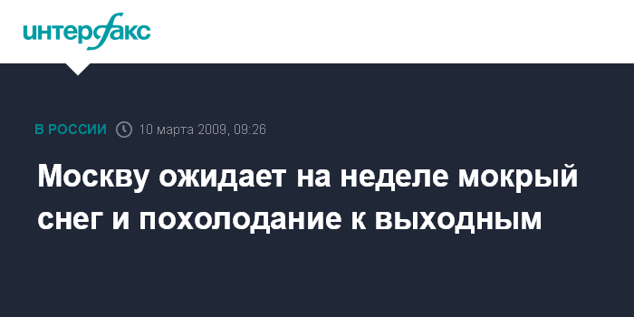Москва. 10 марта. INTERFAX.RU - В ближайшие дни в Москве ожидаются умеренные осадки, синоптики прогнозируют похолодание к выходным.