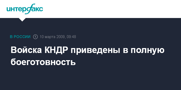 Москва. 10 марта. INTERFAX.RU - Власти КНДР объявили о том, что Вооруженные силы страны приведены в состояние полной боевой готовности перед совместными учениями армий США и Южной Кореи у берегов Корейского полуострова, сообщает британская телерадиокорпорация Би-би-си со ссылкой на Центральное телеграфное агентство Кореи (ЦТАК).