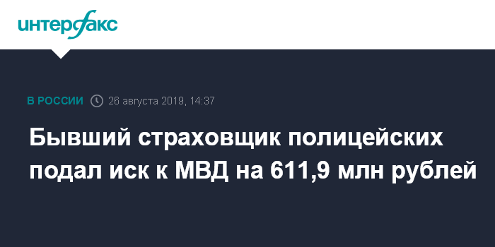 Бывший страховщик полицейских подал иск к МВД на 611,9 млн рублей