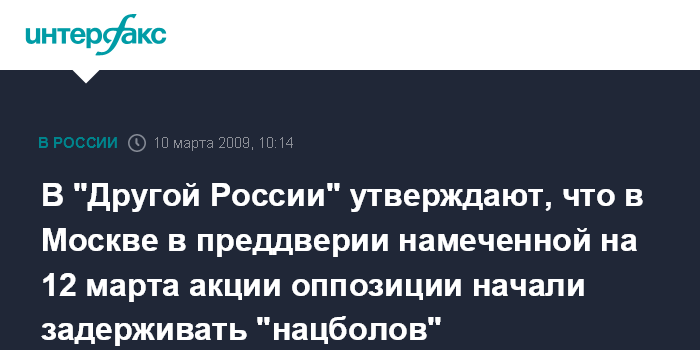 В "Другой России" утверждают, что в Москве в преддверии намеченной на 12 марта акции оппозиции начали задерживать "нацболов"