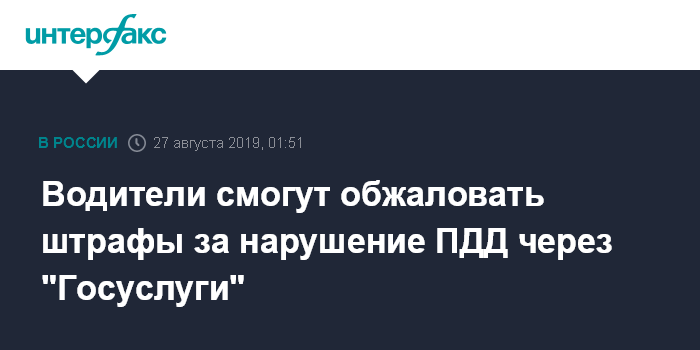 Москва. 27 августа. INTERFAX.RU - Министерство цифрового развития, связи и массовых коммуникаций РФ (Минкомсвязи) планирует в 2020 году запустить в тестовом режиме сервис по обжалованию через единый портал госуслуг штрафов за нарушение правил дорожного движения (ПДД), сообщает во вторник газета "Известия".