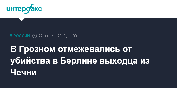 Москва. 27 августа. INTERFAX.RU - Источник во властных структурах Чечни сообщил, что убитый в Германии гражданин Грузии, который по данным СМИ, является выходцем из Чечни, давно утратил связь с родиной и что Грозный не имеет отношения к этому инциденту.