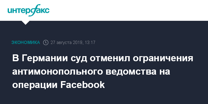 В феврале антимонопольное ведомство решило, что использование пула пользовательских данных, которые Facebook собирает на различных платформах, является злоупотреблением доминирующей рыночной позицией соцсети. У суда возникли "серьезные сомнения" в наличии правовых условиях для этого решения: "Даже если сбор этой информации нарушает правила защиты данных пользователей, совсем не обязательно, что это будет означать нарушение антимонопольного законодательства".