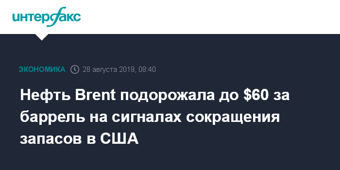 Нефть Brent подорожала до $60 за баррель на сигналах сокращения запасов в США