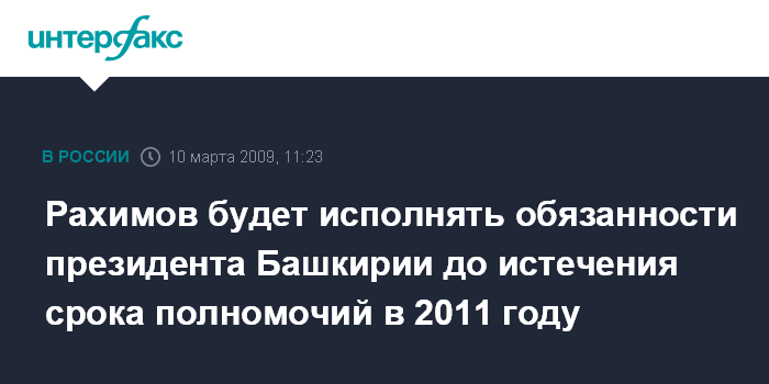 Рахимов будет исполнять обязанности президента Башкирии до истечения срока полномочий в 2011 году