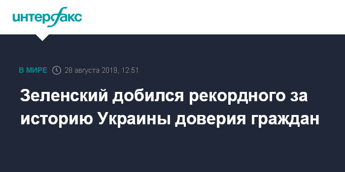 Москва. 28 августа. INTERFAX.RU - Президенту Украины Владимиру Зеленскому доверяют 70% граждан, о чем свидетельствует опрос Фонда "Демократические инициативы" имени Илька Кучерива.