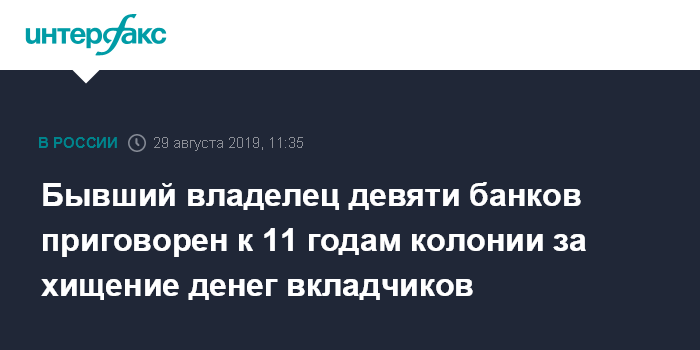 Бывший владелец девяти банков приговорен к 11 годам колонии за хищение денег вкладчиков