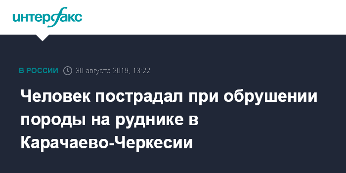 Москва. 30 августа. INTERFAX.RU - В Карачаево-Черкесии произошло обрушение горной породы в шахте Урупского горно-обогатительного комбината, пострадал один человек. Об этом сообщила пресс-служба регионального управления МЧС.