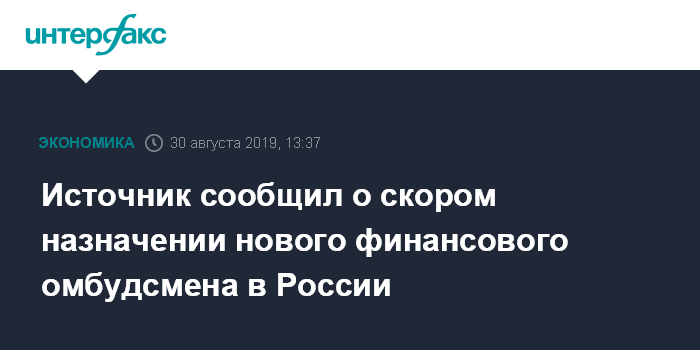 Источник сообщил о скором назначении нового финансового омбудсмена в России