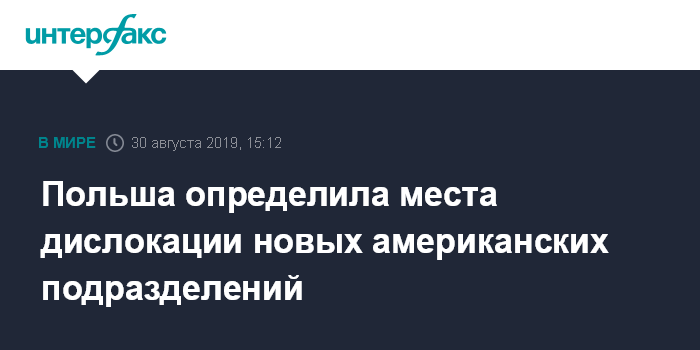 Москва. 30 августа. INTERFAX.RU - Варшава и Вашингтон определили пункты размещения некоторых новых подразделений американских войск в Польше, сообщает польское радио.