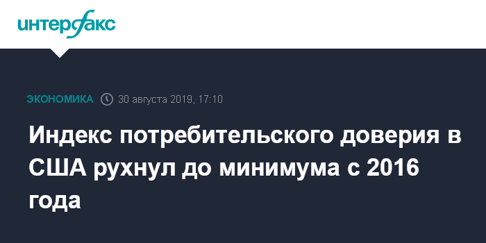 Москва. 30 августа. INTERFAX.RU - Индекс потребительского доверия в США в августе 2019 года уменьшился до 89,8 пункта с июльского уровня в 98,4 пункта, свидетельствуют окончательные данные Мичиганского университета.