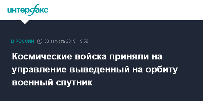 Москва. 30 августа. INTERFAX.RU - Российский военный спутник, выведенный на околоземную орбиту с космодрома Плесецк ракетой-носителем "Рокот", взят на управление Главным испытательным космическим центром имени Титова космических войск Воздушно-космических сил (ВКС) России.