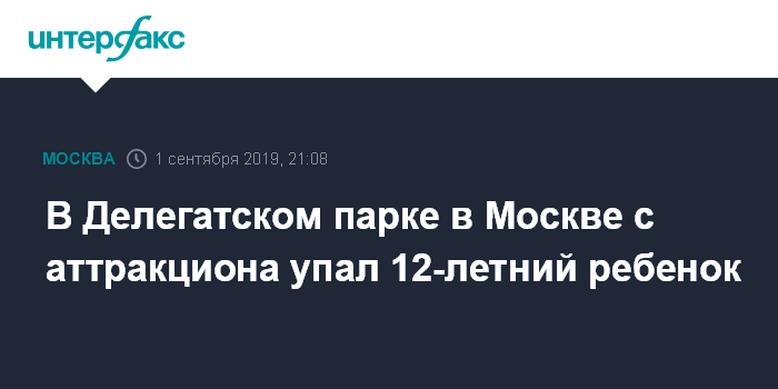 Москва. 1 сентября. INTERFAX.RU - 12-летний ребенок упал с аттракциона в Делегатском парке в Москве, сообщает в воскресенье телеканал Москва24.
