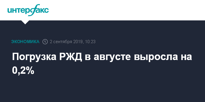 Москва. 2 сентября. INTERFAX.RU - В августе 2019 года погрузка на сети ОАО "РЖД" составила 109 млн тонн, это на 0,2% больше, чем в августе 2018 года, сообщила компания.