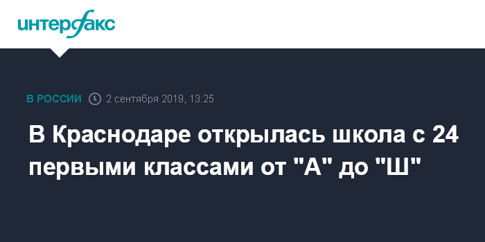 Москва. 2 сентября. INTERFAX.RU - Рекордное количество первых классов - 24 сформировано в средней школе Краснодара по ул. им. Героя Аверкиева, 32.