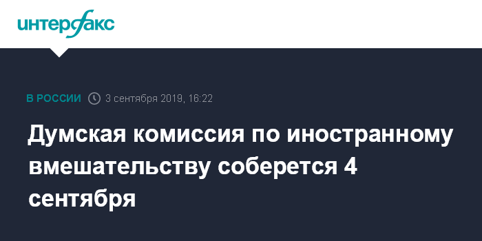 Москва. 3 сентября. INTERFAX.RU - Комиссия Госдумы по расследованию попыток вмешательства извне во внутренние дела России проведет первое заседание 4 сентября и рассмотрит по существу вопросы о вмешательстве.