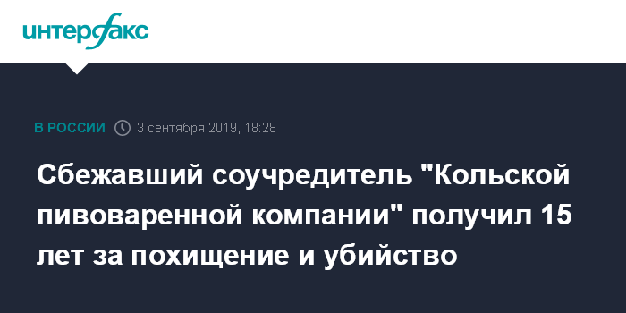 Сбежавший соучредитель "Кольской пивоваренной компании" получил 15 лет за похищение и убийство
