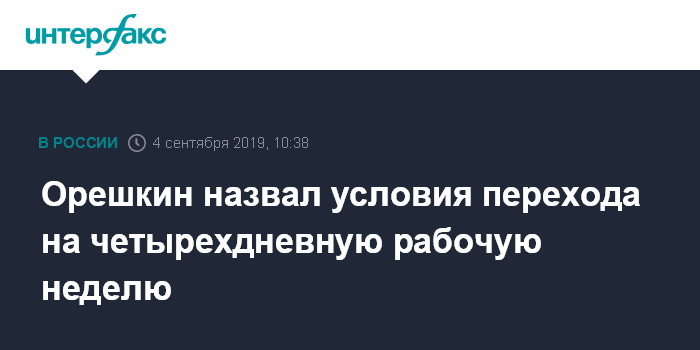 В интервью Business FM на Восточном экономическом форуме во Владивостоке он заявил, что первым условием для этого является высокий уровень зарплаты и производительности труда. Именно при условии высоких доходов и высокой производительности идею "четырехдневки" могут поддержать и работники, и работодатели.