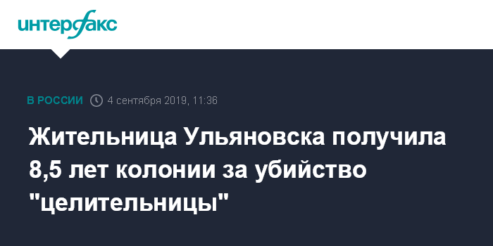 Москва. 4 сентября. INTERFAX.RU - Суд в Ульяновске отправил местную жительницу в колонию на 8,5 лет за убийство псевдоцелительницы, которая три года брала с нее деньги, но так и не помогла с решением проблем, сообщает прокуратура Ульяновской области.