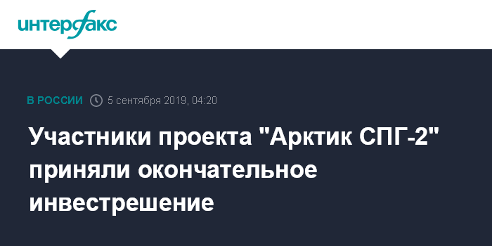 Москва. 5 сентября. INTERFAX.RU - Участники "Арктик СПГ-2", включая японский консорциум, приняли окончательное инвестиционное решение по проекту, заявил министр экономики, торговли и промышленности Японии Хиросигэ Сэко, выступая на сессии ВЭФ-2019.