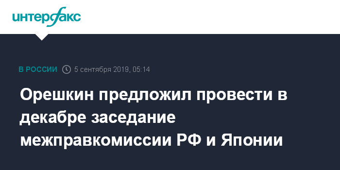 "Если смотреть по срокам, в ноябре саммиты АТЭС и ВАС (Восточноазиатский саммит - ИФ), поэтому есть предложение провести 15-е заседание межправкомиссии 13 декабря в Москве", - сказал глава Минэкономразвития РФ Максим Орешкин в ходе встречи с главой МИД Японии Таро Коно на полях Восточного экономического форума.