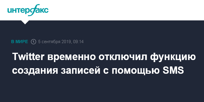 Москва. 5 сентября. INTERFAX.RU - Twitter временно отключил функцию, позволяющую пользователям оставлять записи с телефона с помощью SMS, сообщила пресс-служба социальной сети.