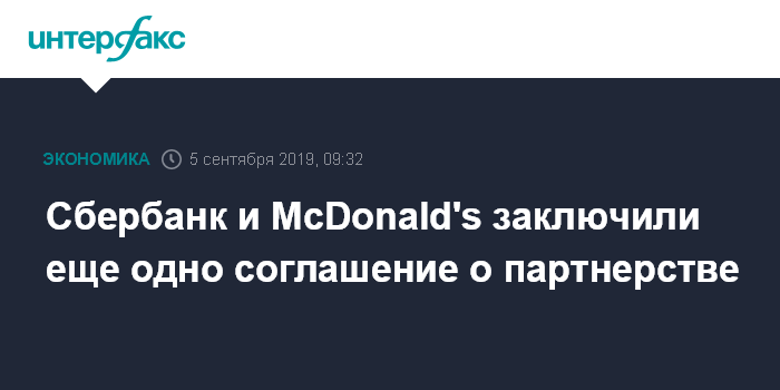 Сбербанк и McDonald's заключили еще одно соглашение о партнерстве