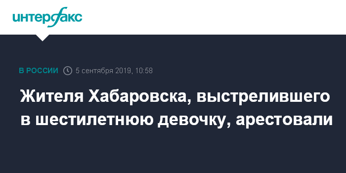 Москва. 5 сентября. INTERFAX.RU - Суд в Хабаровске арестовал жителя Индустриального района города, который из ружья ранил игравшую во дворе шестилетнюю девочку, сообщает в четверг пресс-служба краевого управления СКР.