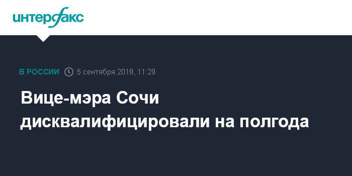Москва. 5 сентября. INTERFAX.RU - Суд Центрального района Сочи по просьбе прокуратуры дисквалифицировал на полгода заместителя мэра города Алексея Толмачева, допускавшего многочисленные нарушения.