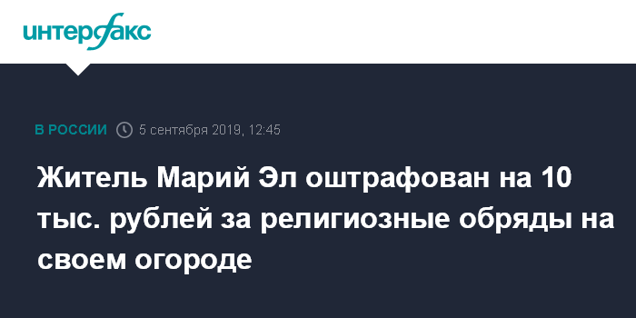Житель Марий Эл оштрафован на 10 тыс. рублей за религиозные обряды на своем огороде