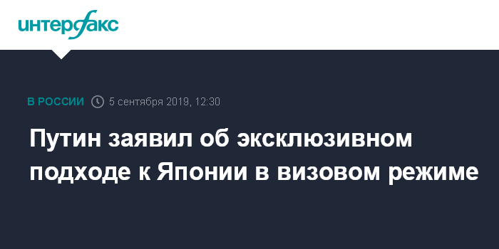 Москва. 5 сентября. INTERFAX.RU - Россия в эксклюзивном порядке решает вопрос визового режима для граждан Японии, которые хотят посетить Курильские острова, заявил на ВЭФ-2019 президент Владимир Путин.