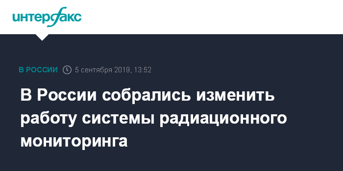 Москва. 5 сентября. INTERFAX.RU - Минприроды РФ предлагает внести изменения в принципы функционирования Единой государственной автоматизированной системы мониторинга радиационной обстановки. Соответствующий проект опубликован на портале нормативных правовых актов в четверг, 5 сентября.