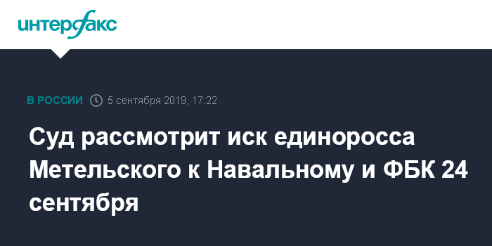 Суд рассмотрит иск единоросса Метельского к Навальному и ФБК 24 сентября