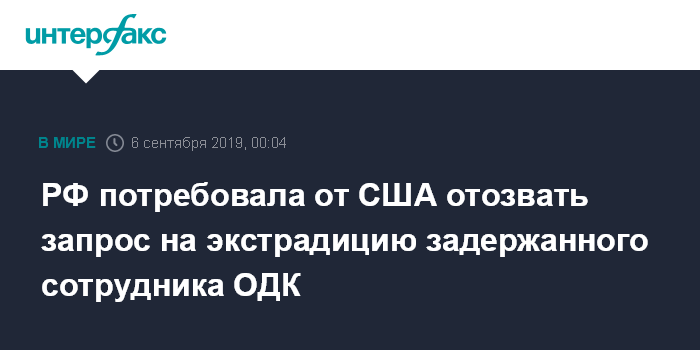 РФ потребовала от США отозвать запрос на экстрадицию задержанного сотрудника ОДК