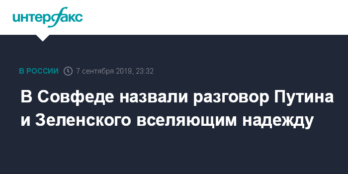 В Совфеде назвали разговор Путина и Зеленского вселяющим надежду