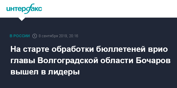 На старте обработки бюллетеней врио главы Волгоградской области Бочаров вышел в лидеры