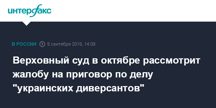 Верховный суд в октябре рассмотрит жалобу на приговор по делу "украинских диверсантов"