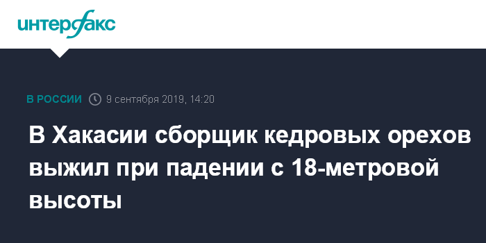 В Хакасии сборщик кедровых орехов выжил при падении с 18-метровой высоты