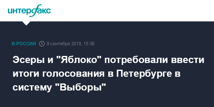 Эсеры и "Яблоко" потребовали ввести итоги голосования в Петербурге в систему "Выборы"