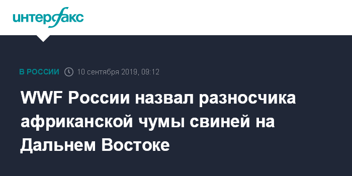 WWF России назвал разносчика африканской чумы свиней на Дальнем Востоке